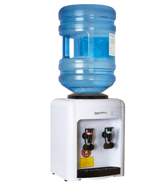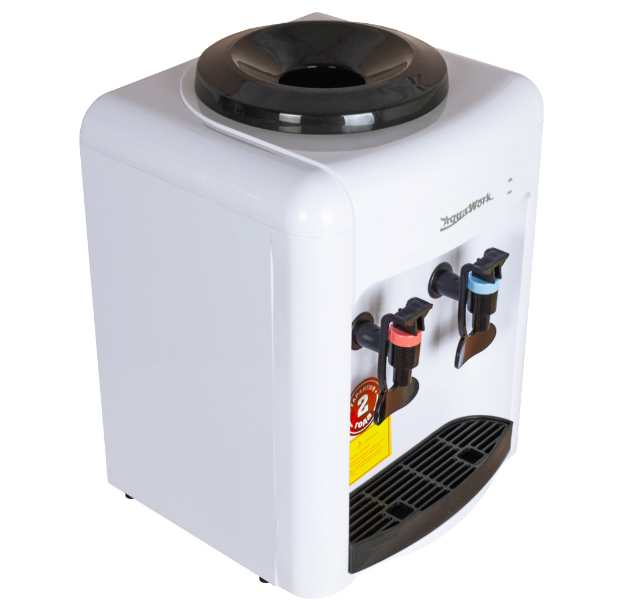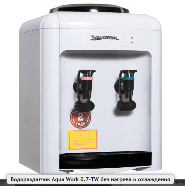 Настольный диспенсер-водораздатчик Aqua Work 0.7-TW позволяет только розливать питьевую воду из установленной сверху аппарата бутыли.