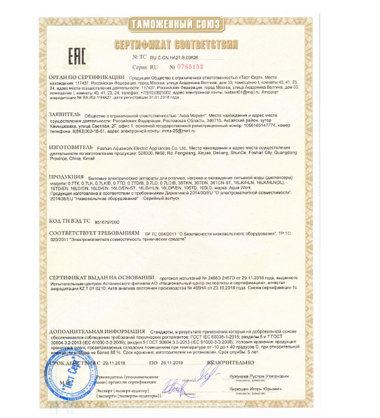 Для снижения стоимости при разработке этого аппарата использовался корпус обычного электронного кулера для воды Аква Ворк 0.7-TD, поэтому водораздатчик унаследовал 2 краника типа "нажим кружкой", хотя и из правого и из левого краников течет вода одинаковой комнатной температуры.